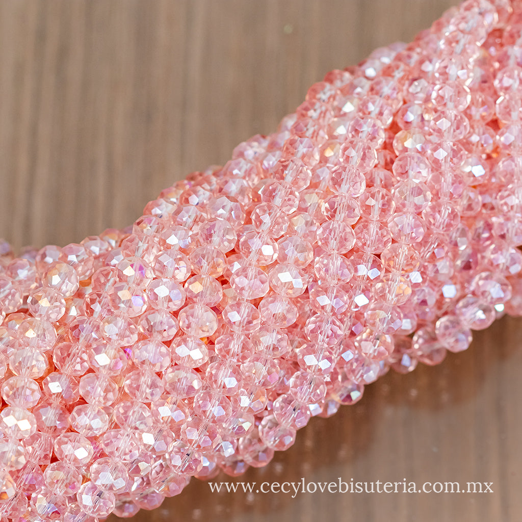 Cristal Rondel Rosa Transparente 8 mm